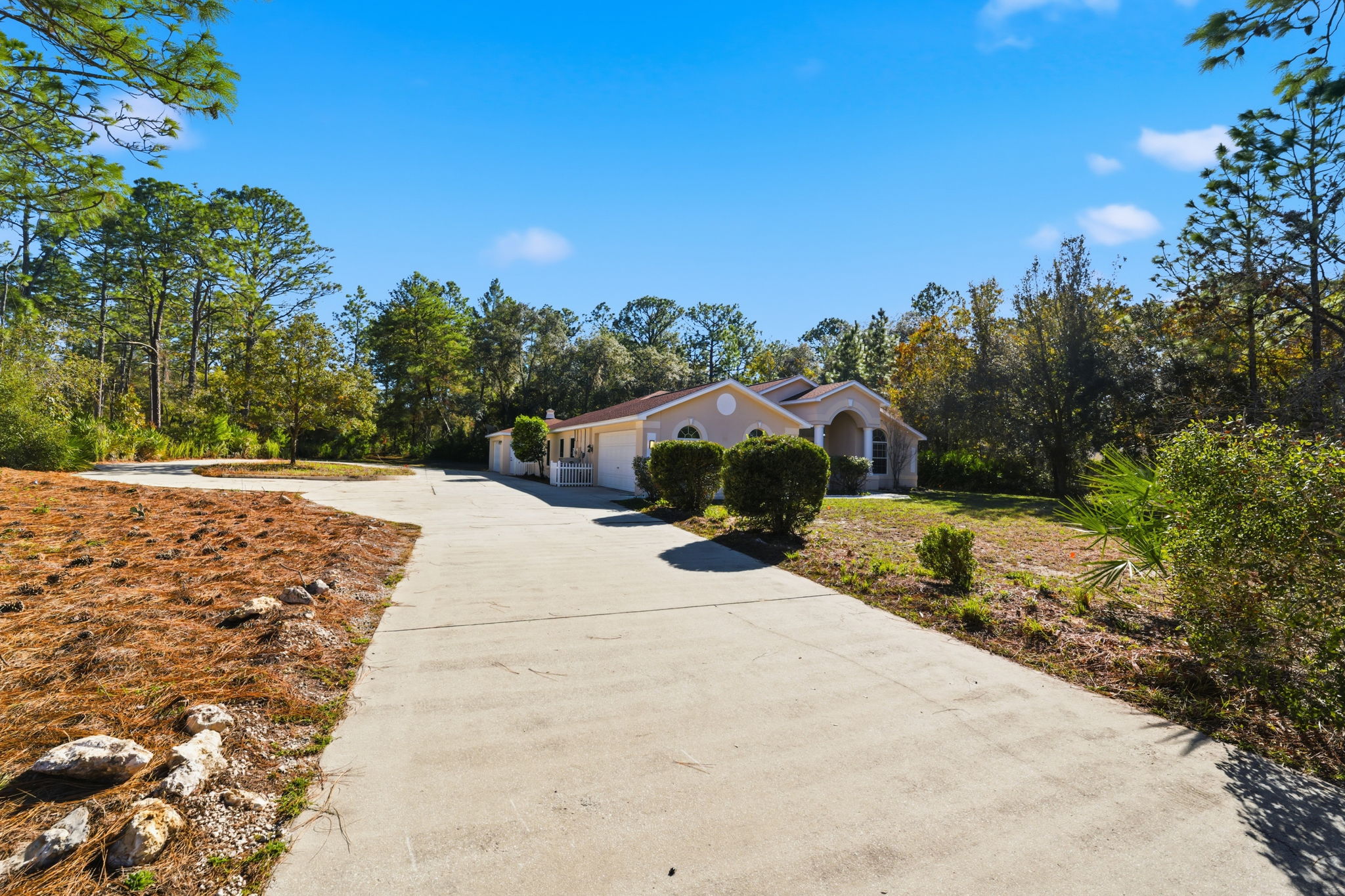Set in the sought-after Pine Ridge community on a serene 1.34-acre wooded lot, this 3-bedroom, 2-bath home welcomes you with a long, natural driveway that extends into a side circular drive leading to split garages at both the front and back of the property, offering a total of four garage spaces and an elegant sense of arrival surrounded by mature trees and lush natural landscaping. The front porch invites you in with textured flooring, tall columns, arched windows, and a smooth light-toned ceiling framing the double-door entry that opens into a bright foyer with tile flooring and direct views of the shimmering pool through wide sliding windows. The dining and family room combination features wood-look luxury vinyl flooring, an open layout, and large windows that fill the space with daylight, with the dining area thoughtfully positioned to the left as you step in. Nearby, the breakfast nook offers the perfect spot to start each morning, surrounded by windows overlooking the pool and connected to the kitchen, which includes tile flooring, white cabinetry, stainless steel appliances, a breakfast bar, a dual sink, and an airy pass-through that opens to the living area. The living room continues the home's seamless flow with luxury vinyl flooring, wide windows framing views of the private backyard, and open access to the kitchen. The primary bedroom feels like a peaceful retreat with wood-look flooring, abundant natural light from large windows, and a sliding glass door leading directly to the pool area, while the ensuite bathroom offers granite countertops, dual vanities, a walk-in glass shower, and a soaking tub beneath a stunning arched window. Bedrooms two and three feature the same warm flooring, spacious walk-in closets, and access to a shared bathroom with a tub-and-shower combination. Outside, the screened pool area becomes an everyday escape with textured flooring, wide sliding windows connecting the interior to the outdoors, and tranquil views of the tree-lined backyard with natural ground cover. Nearby attractions include the Withlacoochee State Trail, a popular paved path ideal for biking, jogging, and nature walks; the wildlife-rich waters of Crystal River, perfect for boating and exploring Florida’s natural springs; and Beverly Hills Community Park, where open green spaces, walking paths, and recreational amenities offer outdoor enjoyment just minutes from home.
